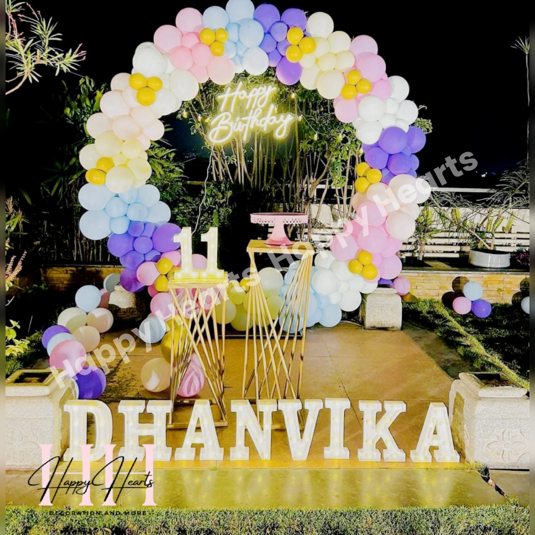 250 balloons yellow pastel, purple, baby pink, peach, sky blue, light yellow